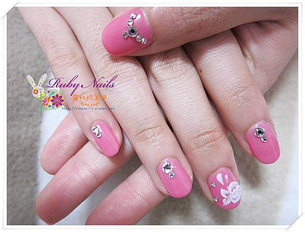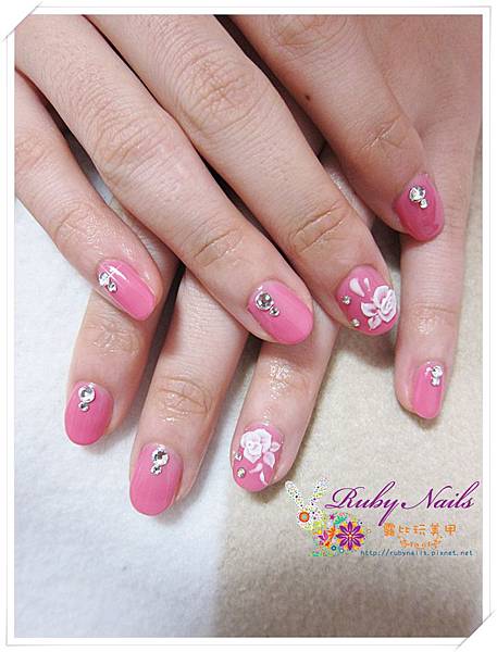 很甜美的粉紅單色光療!再加上很有氣質的粉雕玫瑰!