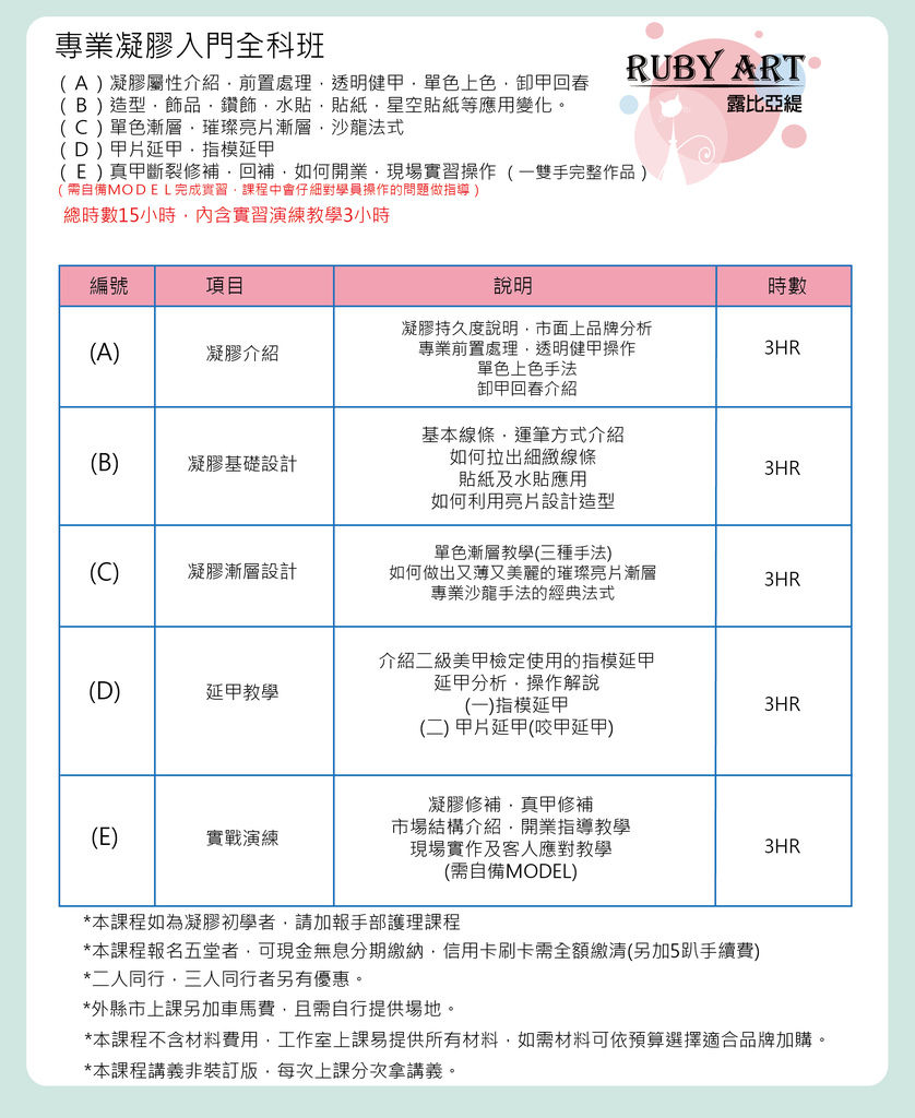 如果想從事美甲或創業人員,建議參考我們的凝膠沙龍創業課程(課程內容比較豐富也比較滑算喔!)