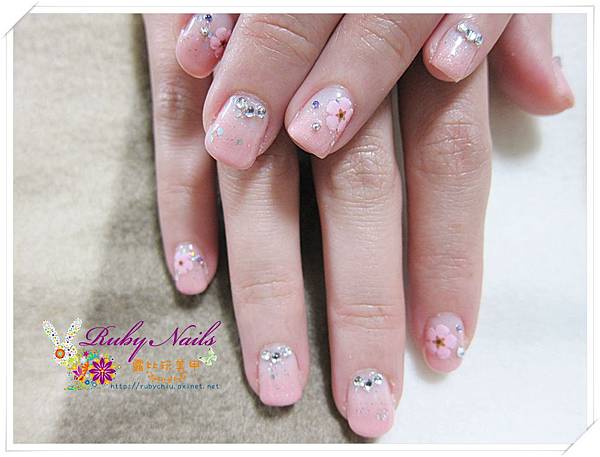 小花可愛風! 這款是一位要去參加謝師宴的水水特別來做的喔!當天二位護理系大四的水水來露比這裡製作光療...
