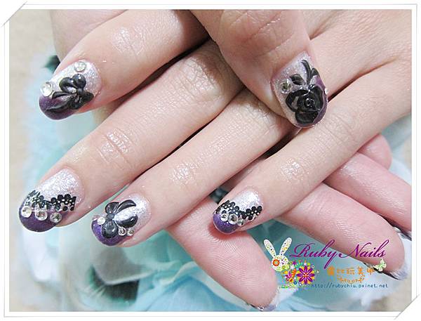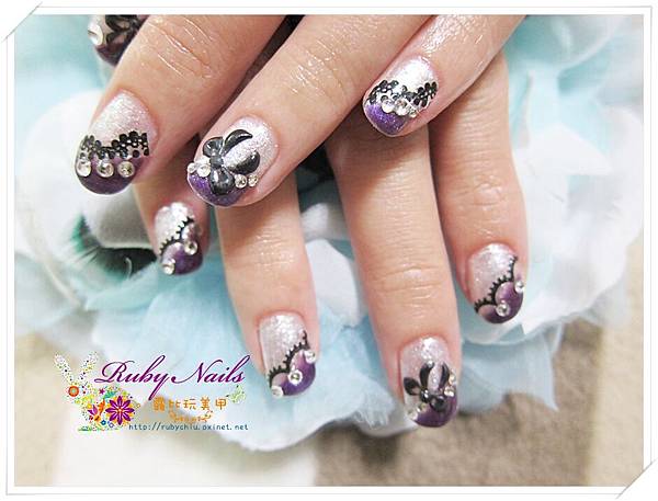 再加上立體粉雕...水水又想要可愛的感覺,於是加上了蕾絲!! 很特別的款式!再用斜邊法式來顯示層次!