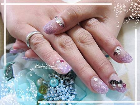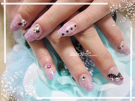 嘿!這個是Ruby 三月開工的第二款水晶指甲啦!黑色的蕾絲再加簡單的配鑽,再搭配蛋型的水晶指甲!
