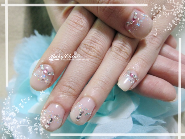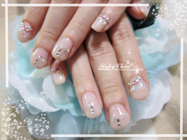 所以Ruby又上加了銀色亮片點綴,原本不想貼鑽的她最後也被Ruby說明貼了一點綴,讓整個作品看起來低調又不失華麗感。