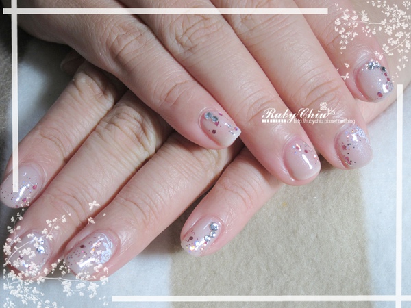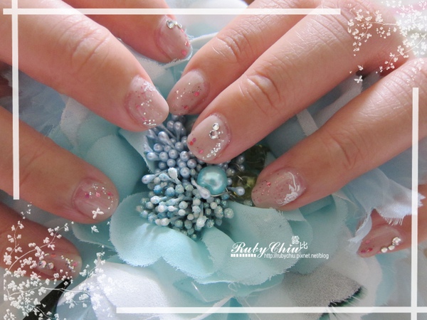 很多人很愛裸色!Ruby也是,裸色雖然低,再加水鑽點綴跟亮片點綴,最後再加上美美的轉印貼紙一整個就很有fu。