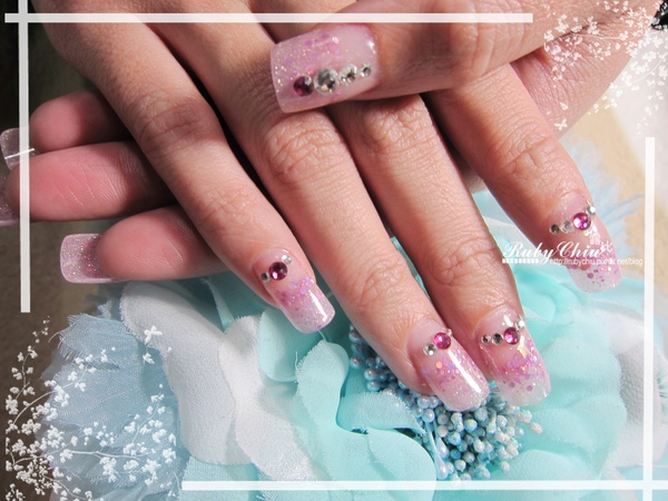 好一陣子沒客人來做水晶了!最近光療很夯哩!都是光療客人!