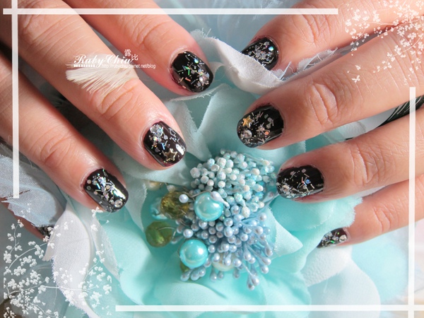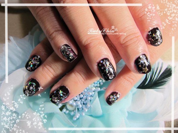 總之...最後就留下了,今天就用了黑櫻桃的經典色來做了簡單的彩繪加貼鑽,再放上星星鋁片。