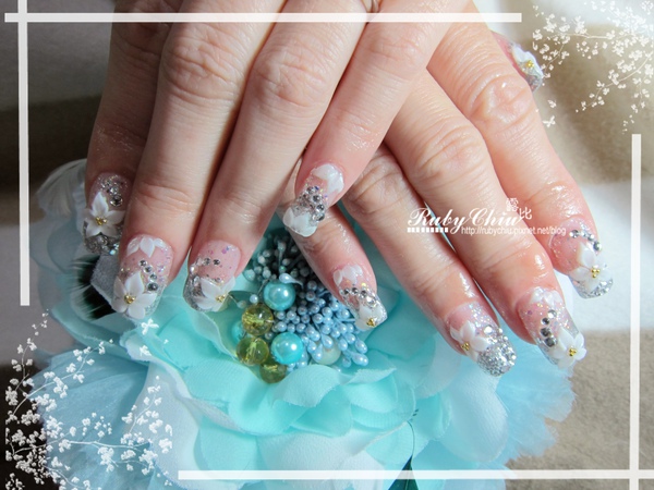 又是一發10指滿滿的粉雕加鑽啦!款式很簡單喔!不過也是雜誌款。