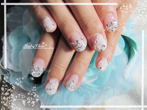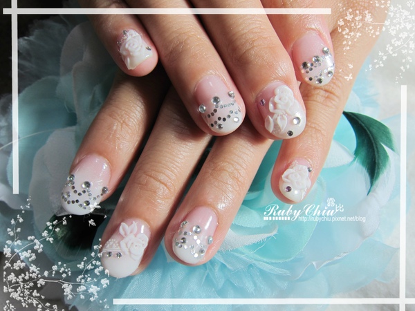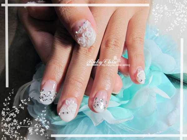 這次去美甲展大敗家...珍珠白是這次的新色喔!馬上就有美媚選啦!這款是雜誌款!做的幾乎一模一樣啦!