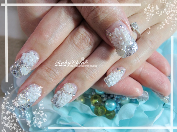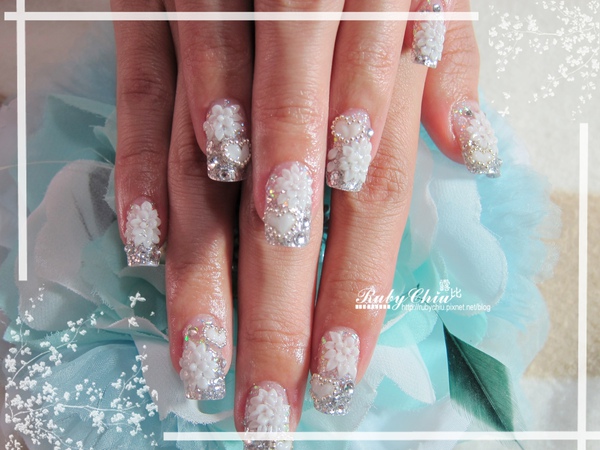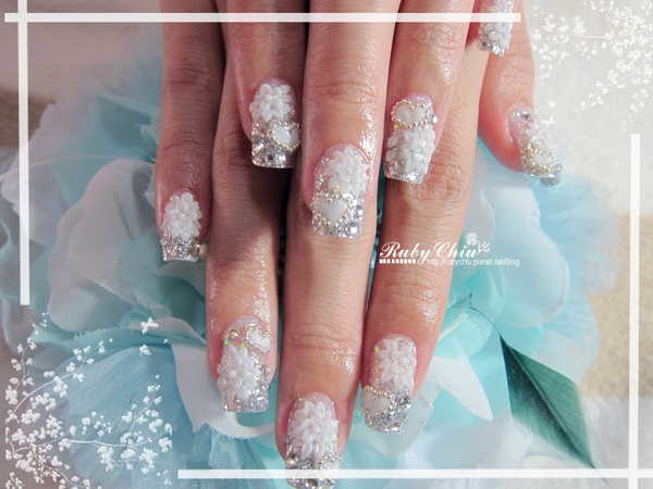 今天Ruby加前置大概做了將近4小時喔!花是粉雕+貼鑽就要1小時多的工了!Ruby雕的比較久啦!