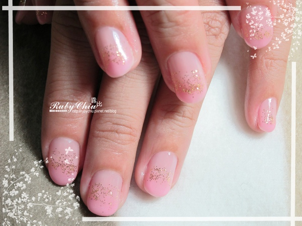 客人第二次做光療嚕!一樣要低調!上次用亮片她說太高調了...這次就說只要細粉點綴就好了!