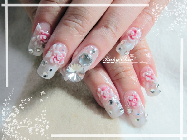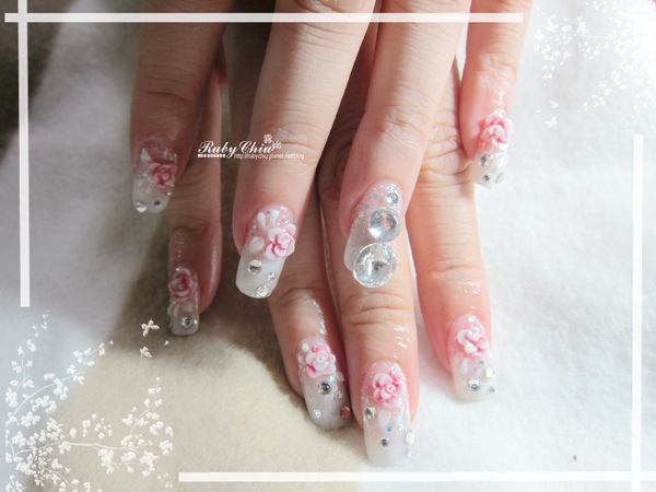 很華麗的白色水晶指甲,今天要強調的是施華落世奇的衛星石喔!在apple的無名指上最大顆的就是!
