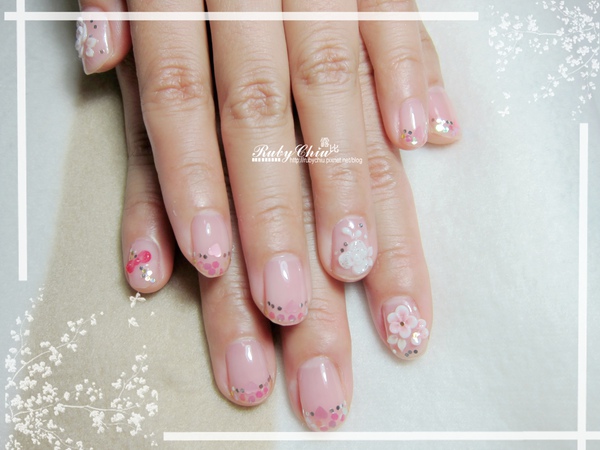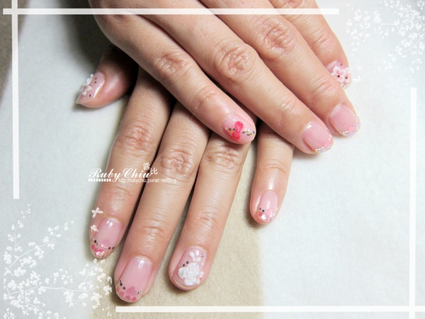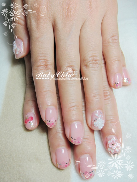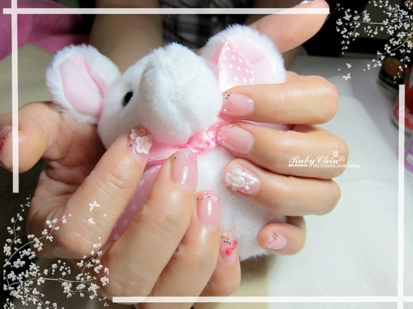 款示很簡單喔!用的是自然粉色的光療來製作,讓指甲自然透出健康的粉紅色啦!