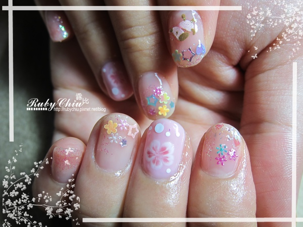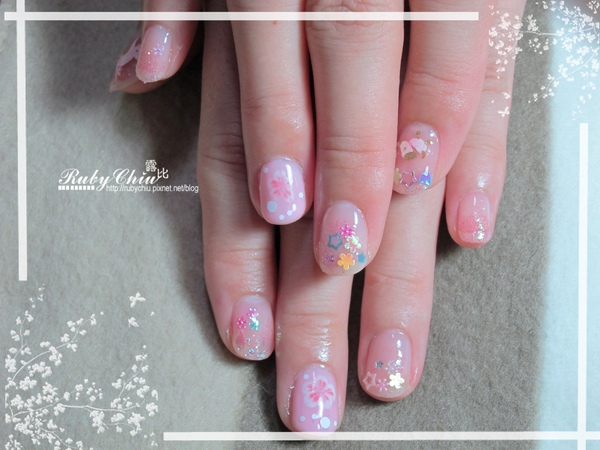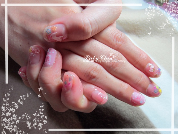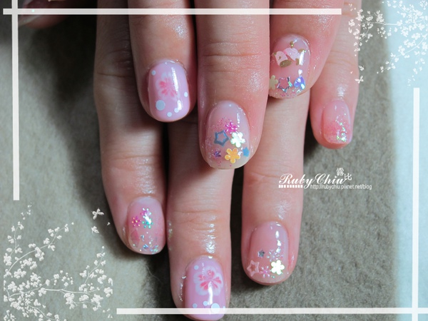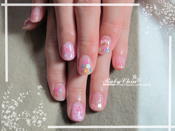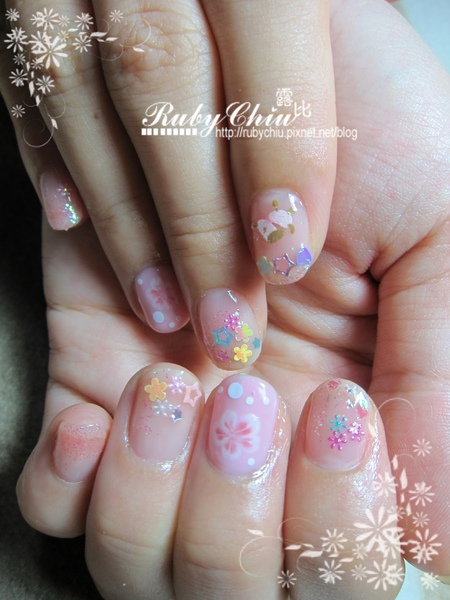 所以只好改變原本要製作的想法...做了這款粉嫩又混搭風的光療...