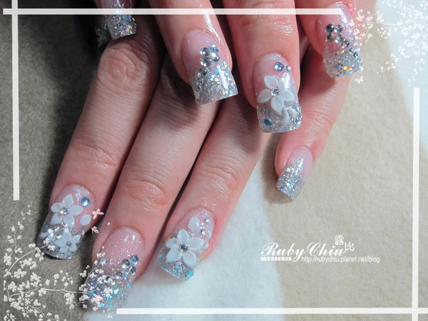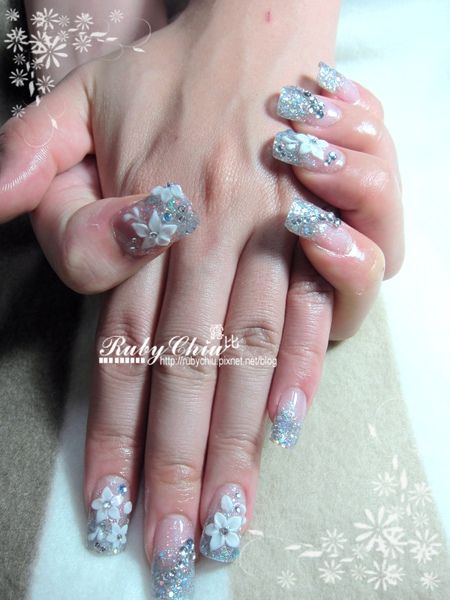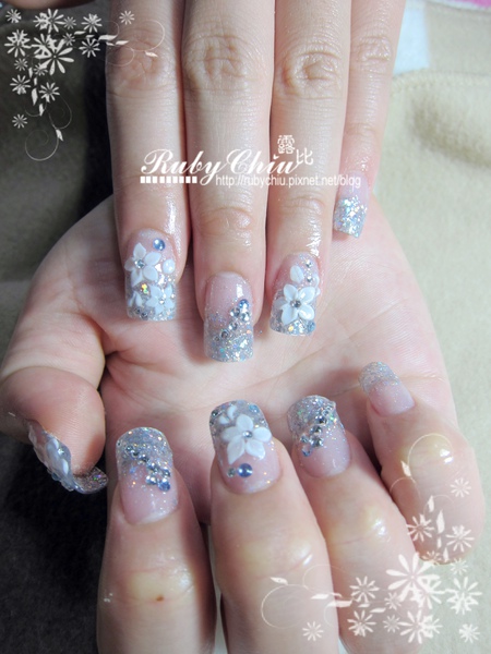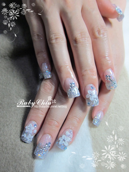 因為要搭配陳小姐的衣服,所以啦~ Ruby就建議銀色的水晶甲,真得很閃亮喔!