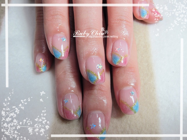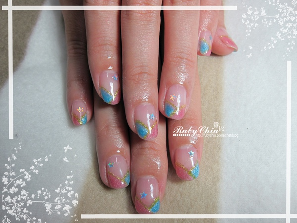 所以會呈現很明顯的扇型啦!看看Ivy的右手食指跟中指就知道啦~因為是用光療凝膠做出來的!