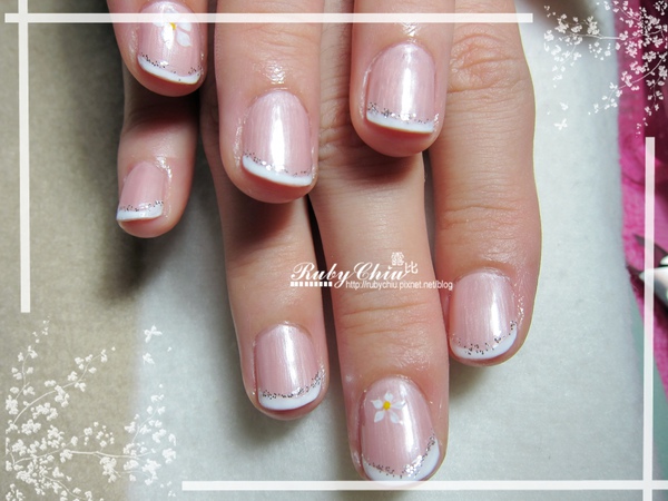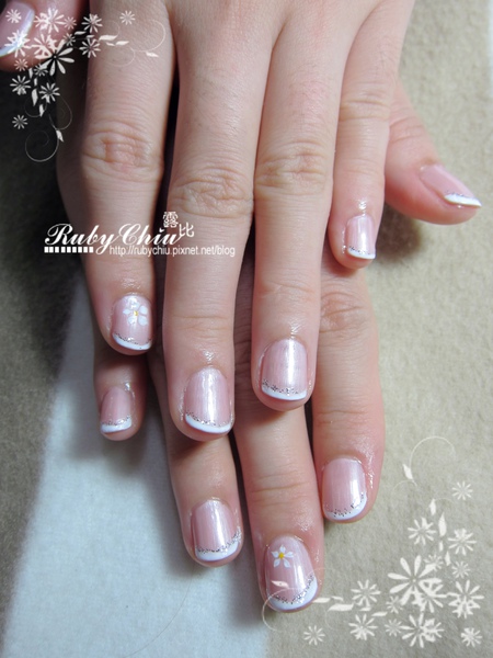 保養完後,把她畫了法式彩繪,還畫了二指五瓣尖花!