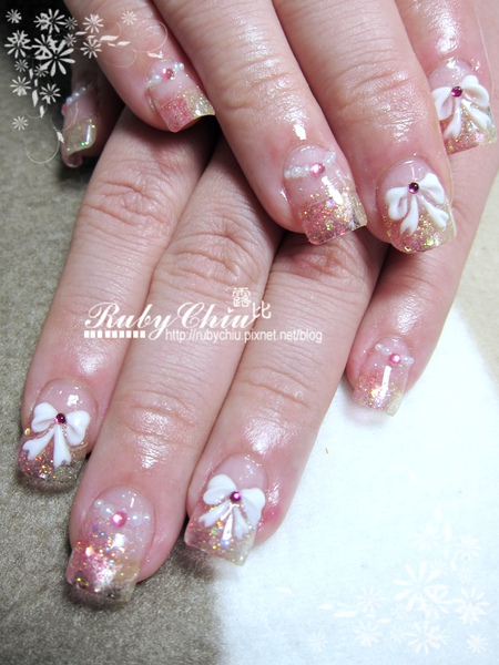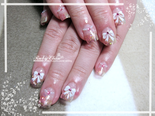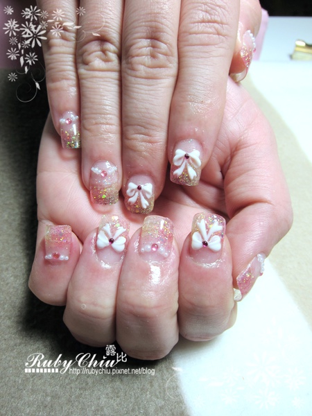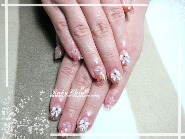 林小姐的指甲很小片~ 且大部份都有扇型甲...不過沒關係,做水晶就是要矯正指甲嘛!