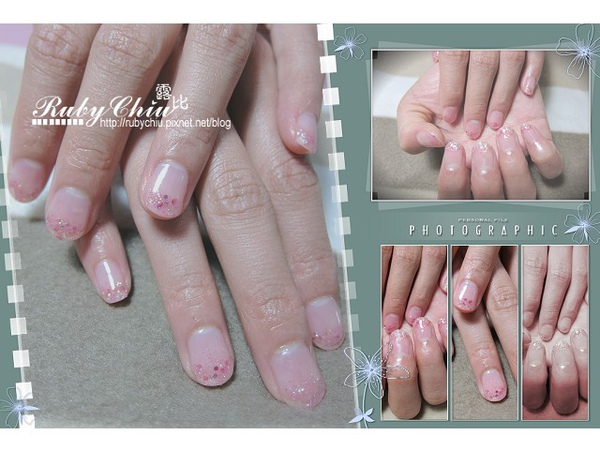 學了光療後,一直都是拿寶貝跟自己的右手練習,剛好寶貝妹妹的學妹想做,可是學妹因為要打籃球的關係,沒辦法做有長度的水晶指甲。