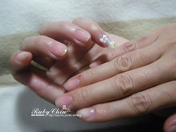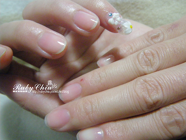 於是就幫她做了基礎手部保養再加一指水晶啦!