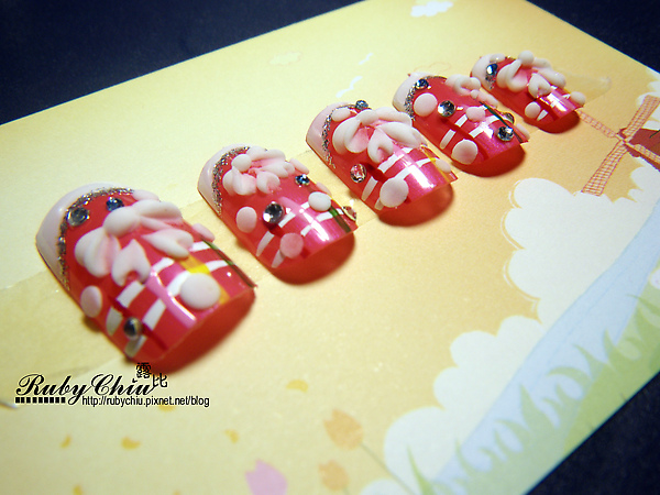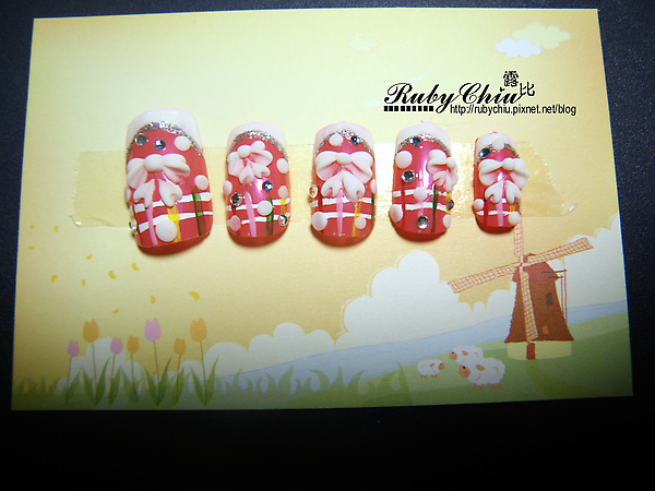 蝴蝶結真得不好雕哩!我的蝴蝶結一直都沒有立體感,老師說我的運筆方式不對。