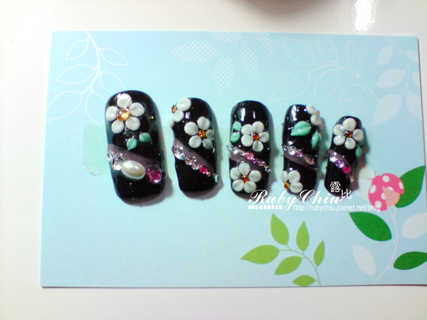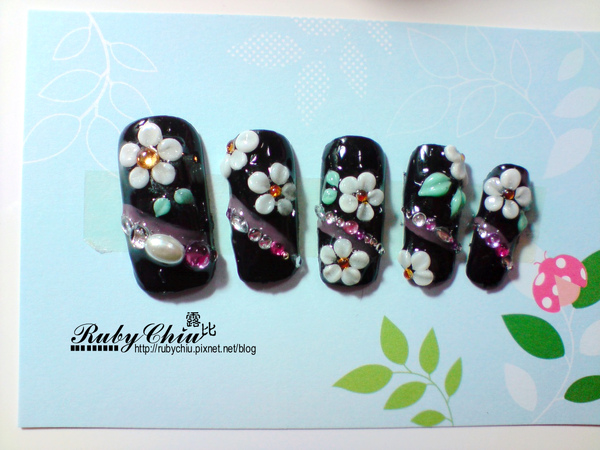好朋友ivy就大方的借我她的工具啦! 晚上一回家就拿昨天畫好底色的甲片來做。