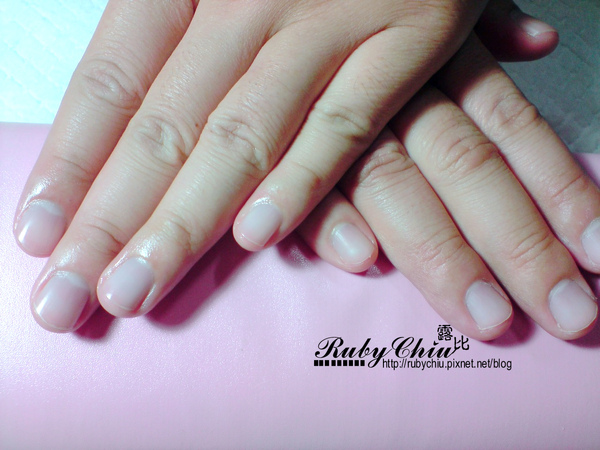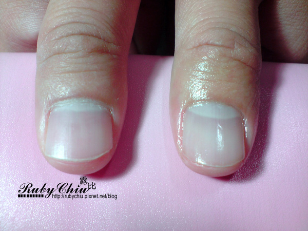 右邊是保養完的大姆指,甘皮跟死皮都去除了,再擦上指緣油讓手指吸收。